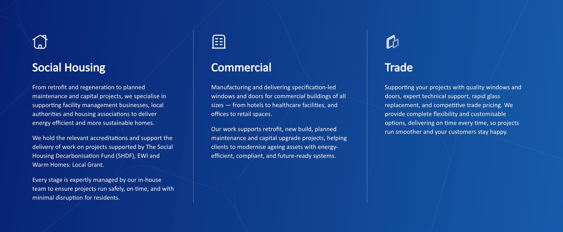Whether you need new windows for a property renovation, double glazing upgrades, or full window installations for a development project, our team is ready to help.